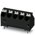 Клеммы для печатной платы, номинальный ток: 13,5 A, расчетное напряжение (III/2): 320 В, номинальное сечение: 1,5 мм², размер шага: 5,08 мм, полюсов: 5, тип подключения: Пружинные зажимы Push-in, монтаж: THR пайка, направление подключения, проводник/печатная плата: 45 °, цвет: черный, Длина выводов [P]: 2,6 мм