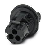 Круглые разъемы (со стороны устройства), Серия изделий: PRC, Аппаратн. соединитель, задняя стенка, материал корпуса: PPE, цвет: черный, полюсов: 3, номинальное напряжение: 690 V AC, расчетный ток: 35 A, Тип подключения: Обжим, Тип контактов: Штифт