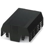 Корпуса для установки на несущую рейку, Верхняя часть, плоская конструкция, без соединительного отверстия, с вентиляционными отверстиями, ширина: 90,1 мм, высота: 74,65 мм, глубина: 36,95 мм, цвет: черный (9005)