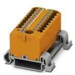 Распределительный блок, Горизонтально расположенный блок и интегрированное питание, Блоки можно шунтировать между собой, используя отверстия клеммы. Подходящие перемычки см. в принадлежностях, номинальное напряжение: 690 В, номинальный ток: 24 A, тип подключения: Зажимы Push-in, Зажимы Push-in, количество точек подсоединения: 19, cечение: 0,14 мм² - 4 мм², AWG: 26 - 12, ширина: 56,5 мм, цвет: oранжевый, тип монтажа: NS 35/7,5, NS 35/15