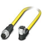 Кабель для датчика / исполнительного элемента, 5-полюсн., ПВХ, желтый, Штекеры прямое M12 SPEEDCON, механические ключи: A, к Гнездо угловой M12 SPEEDCON, механические ключи: A, длина кабеля: 3 м