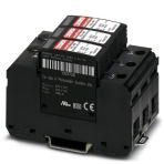 Разрядник для защиты от перенапряжений для 2-полюсных изолированных систем 1500 В DC, монтаж на DIN-рейке, 3-полюсный базовый элемент, три вставных варистора с контролем температуры, индикаторы состояния на каждом штекерном модуле.