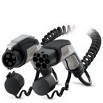 Мобильный зарядный кабель AC, С зарядным штекером электромобиля и инфраструктурным зарядным штекером, С защитным колпачком, Цвет корпуса: черный-серый, С возможностью блокировки навесным замком, Для зарядки электромобилей (EV) с зарядной розеткой типа 1 переменным током (AC), Совместим с инфраструктурными зарядными розетками типа 2 на зарядных станциях для электромобильности (EVSE), Тип 1, Тип 2, МЭК 62196-2, SAE J1772, 32 A / 250 В (AC), C-Line, Логотип PHOENIX CONTACT, кабель: 4 м, черный, спираль